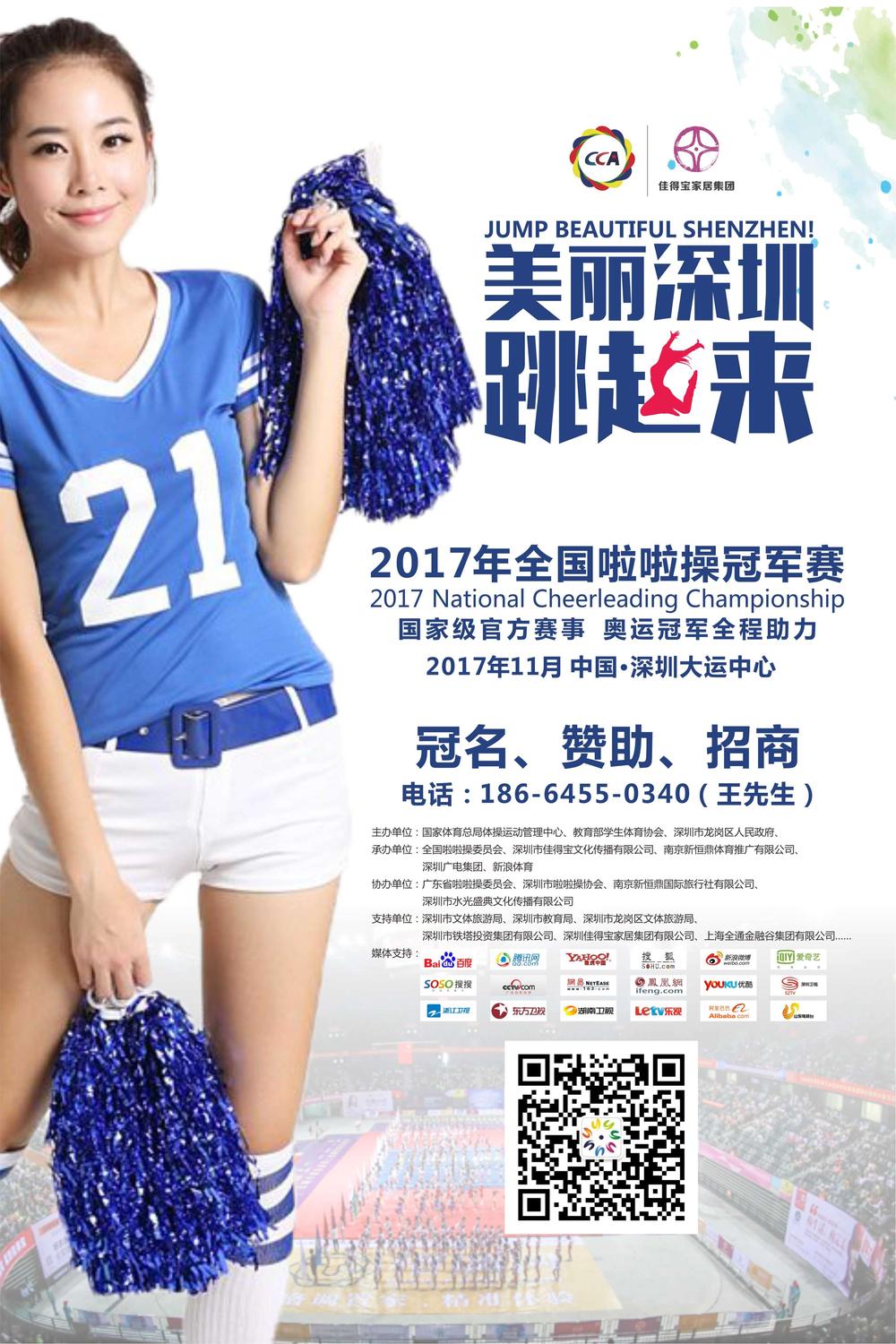 【重磅赛讯】:2017年全国啦啦操冠军赛 2017年全国啦啦操冠军赛属于国家重点官方赛事,是国内啦啦操最高水平比赛之一,是推动我国啦啦操发展的重要里程碑! 2017年全国啦啦操冠军赛由国家体育总局体操运动管理中心、国家教育部学生体育协会主办,全国啦啦操委员会、深圳市佳得宝文化传播有限公司承办,将于10月19-22日在深圳大运中心举办。 本次赛事是全国啦啦操在深圳的首届冠军赛,规模超大、水平超高,参赛队伍将覆盖全国30个以上的省市自治区约300支,运动员4000人以上。其中,广场啦啦操(舞)的专项官方比赛在国内也属首次。本次赛事由奥运冠军担任项目公益大使,全程助力赛事。同时,以新华社为首的国内主流媒体,将对赛事给予空前的新闻关注与报道。 上一篇: 跳好啦啦操也可以上清华北大!