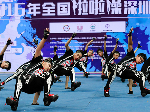 今年的全国啦啦操冠军赛,在参赛项目上有哪些创新? (@ 小雷雷家的金鱼) 相比往年,今年的全国啦啦操比赛在“传承”中有所创新:除了“全国啦啦操规定动作”、“全国啦啦操自选动作”、“校园啦啦操示范动作”和“校园啦啦操自选动作”等传统的四个比赛项目之外,今年我们新增了“广场啦啦操比赛”,这也是全国啦啦操冠军赛这么多年来首次将广场啦啦操纳入比赛项目。 (@ 2017年全国啦啦操大赛组委会) ![]() 样图,仅供参考 ▲集体表演啦啦操(↑点击可见大图)/ 图 今年,全国啦啦操冠军赛首次在深圳举办,会融入深圳元素的亮点吗? (@ 蒙ci大大) 是的,啦啦操在中国的发展越来越成熟。怎样用国际化视野重新审视啦啦操,同时也让今年的啦啦操巧妙地融入深圳元素,是组委会一直在考虑的问题。今年的啦啦操,我们准备在开幕式环节设置一个“万人啦啦操”表演环节,届时,预计全国啦啦操冠军赛的4000名运动员和深圳市各中小学生6000人会参与进来,我们也会考虑以此申请吉尼斯世界记录。而在深圳元素的选用上,我们将深圳民俗文化元素如观澜麒麟舞、客家文化、岭南文化民俗元素融入舞蹈创意里,向世界展现具有中国文化特色的啦啦操舞蹈。 (@ 2017年全国啦啦操大赛组委会)